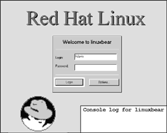 reboots after a startup process, you will see the Red Hat logon screen (Figure