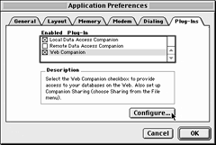 Generally, you'll only need to set up Web Companion once. Selecting which FileMaker files will be published on the Web, however, must be done file by file using the File Sharing dialog box. To set up the Web Companion: